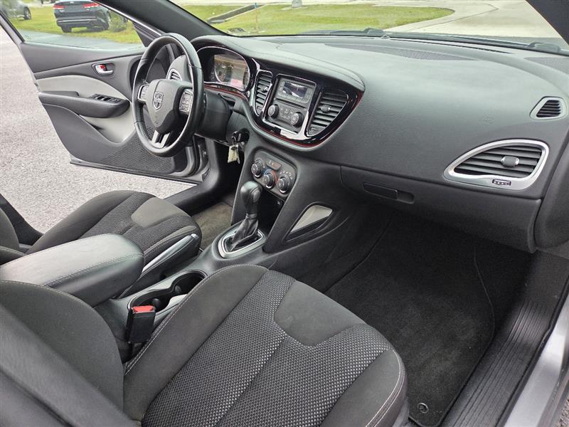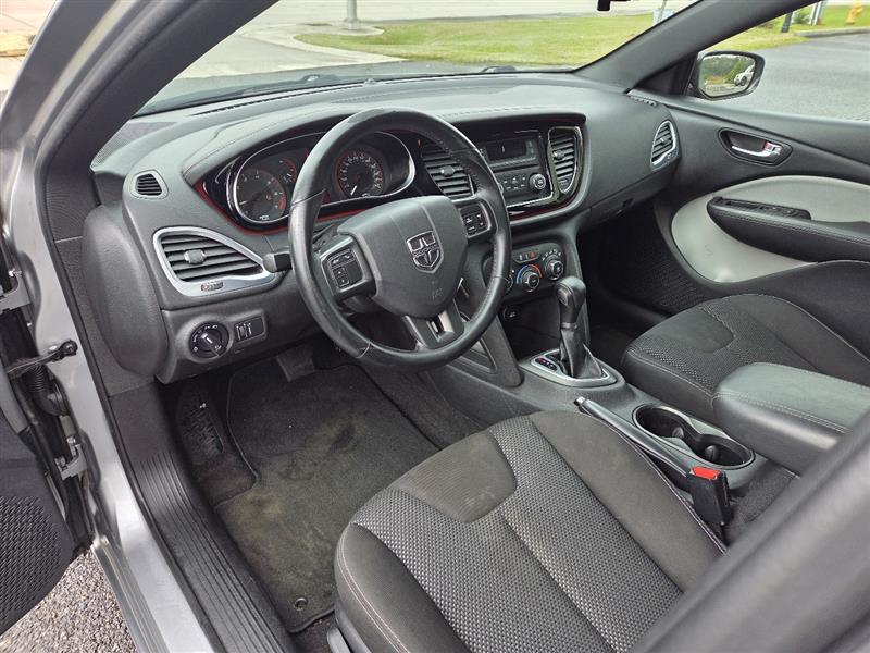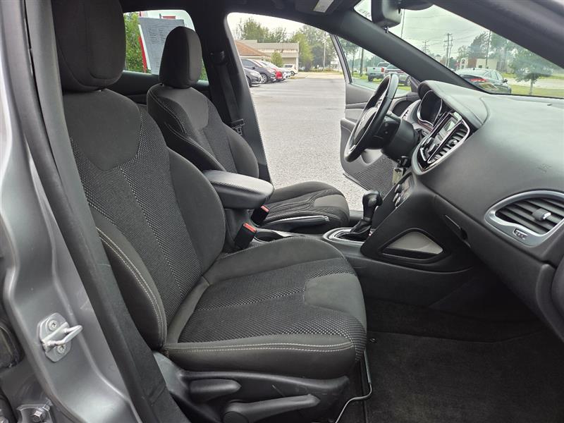 Get ready to hit the road in style with this sleek Silver 2016 Dodge Dart! This fun and sporty sedan is perfect for zipping around town with its Front-Wheel Drive capability, powered by a peppy 2.4L I4 MultiAir engine. Equipped with a 4.12 Axle Ratio and Electric Power-Assist Speed-Sensing Steering, this Dart is sure to provide a smooth and exhilarating driving experience.The exterior features a modern design with Body-Colored Front and Rear Bumpers, Auto On/Off Projector Beam Halogen Daytime Running Headlamps, and LED Brakelights for added visibility. Step inside the cabin and enjoy the comfortable Cloth seats, Uconnect with Bluetooth Wireless Phone Connectivity, and a 6-speaker audio system for entertainment on the go.Safety is a top priority with this Dodge Dart, offering Side Impact Beams, Curtain Airbags, and Rear Child Safety Locks for peace of mind on every drive. Plus, rest assured that a Carfax report is available for this vehicle, so you can purchase with confidence. Don't miss out on this fantastic pre-owned find!